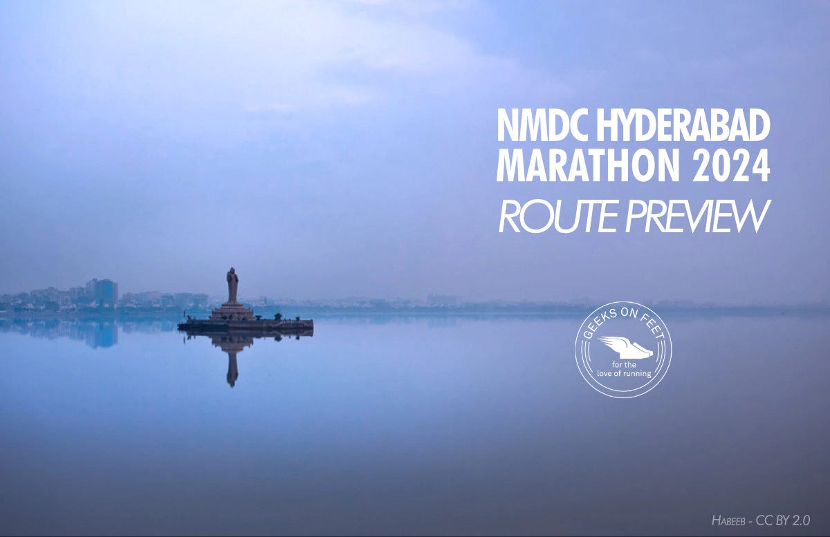 Route preview, pace calculator, and mile challenge for Hyderabad Marathon. Take a deep breath to read through it and get ready at #GeeksonFeet